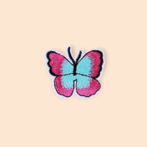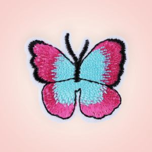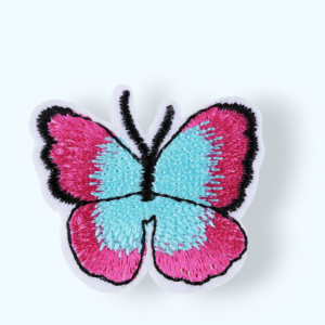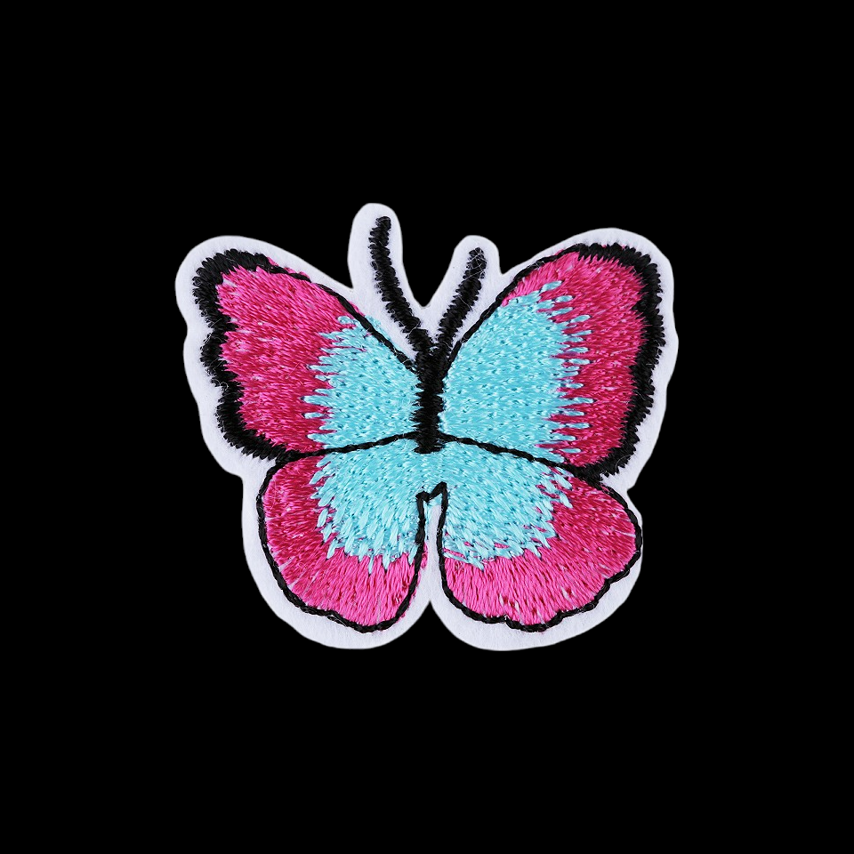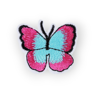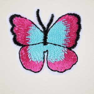 Aplicatie termoadeziva brodata, 36 x 40 mm, Fluture fucsia si bleu