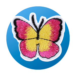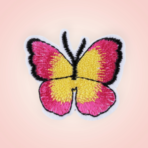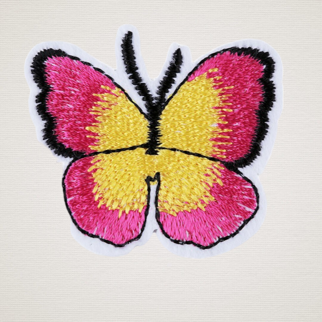 Aplicatie termoadeziva brodata, 36 x 40 mm, Fluture roz strident si galben