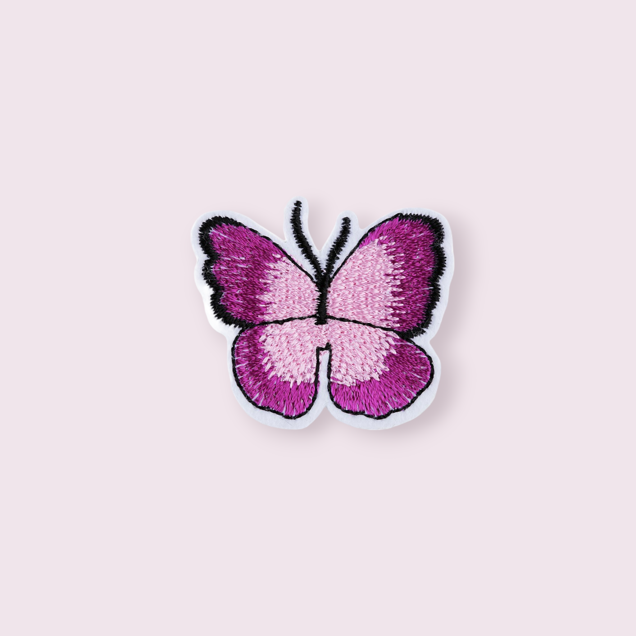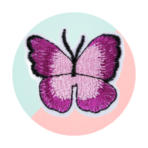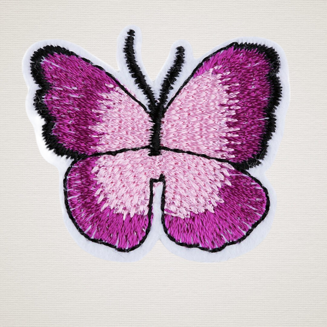 Aplicatie termoadeziva brodata, 36 x 40 mm, Fluture violet si roz