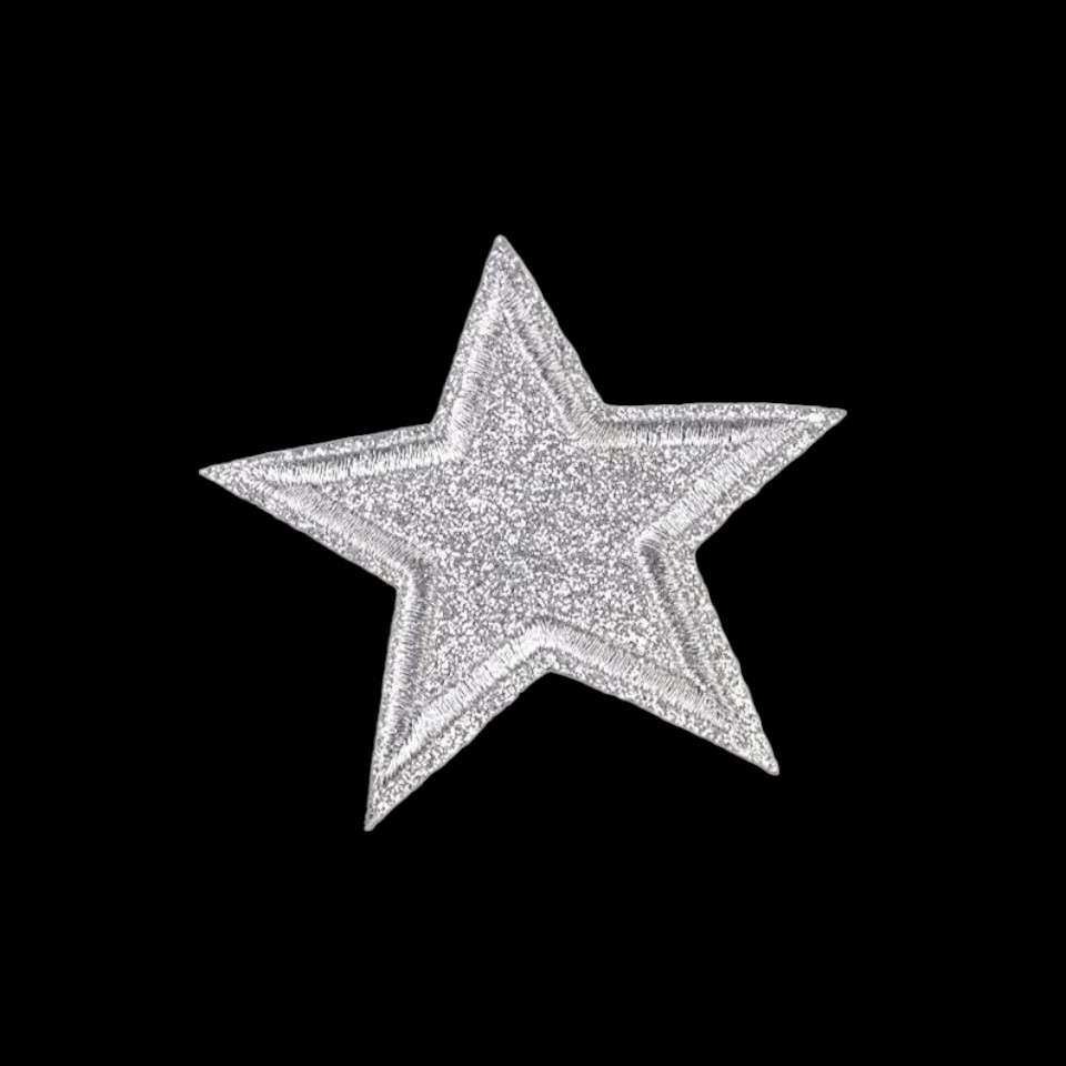 Aplicatie termoadeziva Crisalida, stea 6.5 cm, cu sclipici, Argintiu