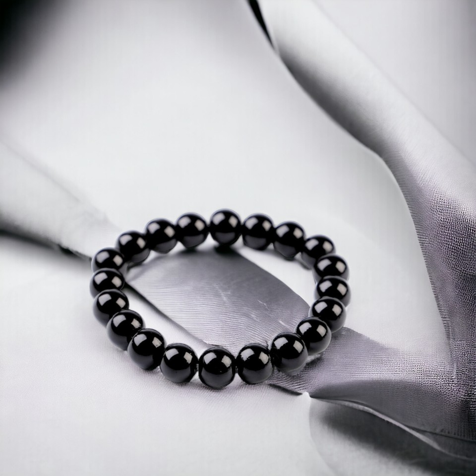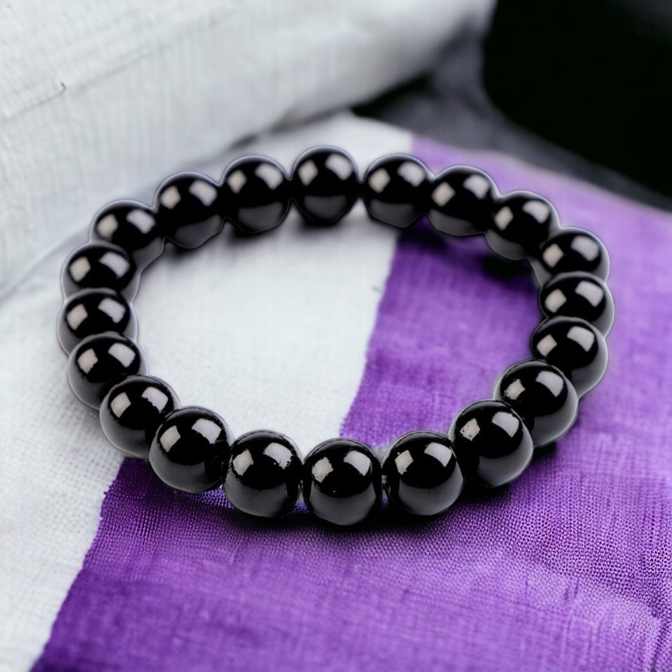 Bratara elastica din perle de sticla Crisalida, lungime 21 cm, Negru