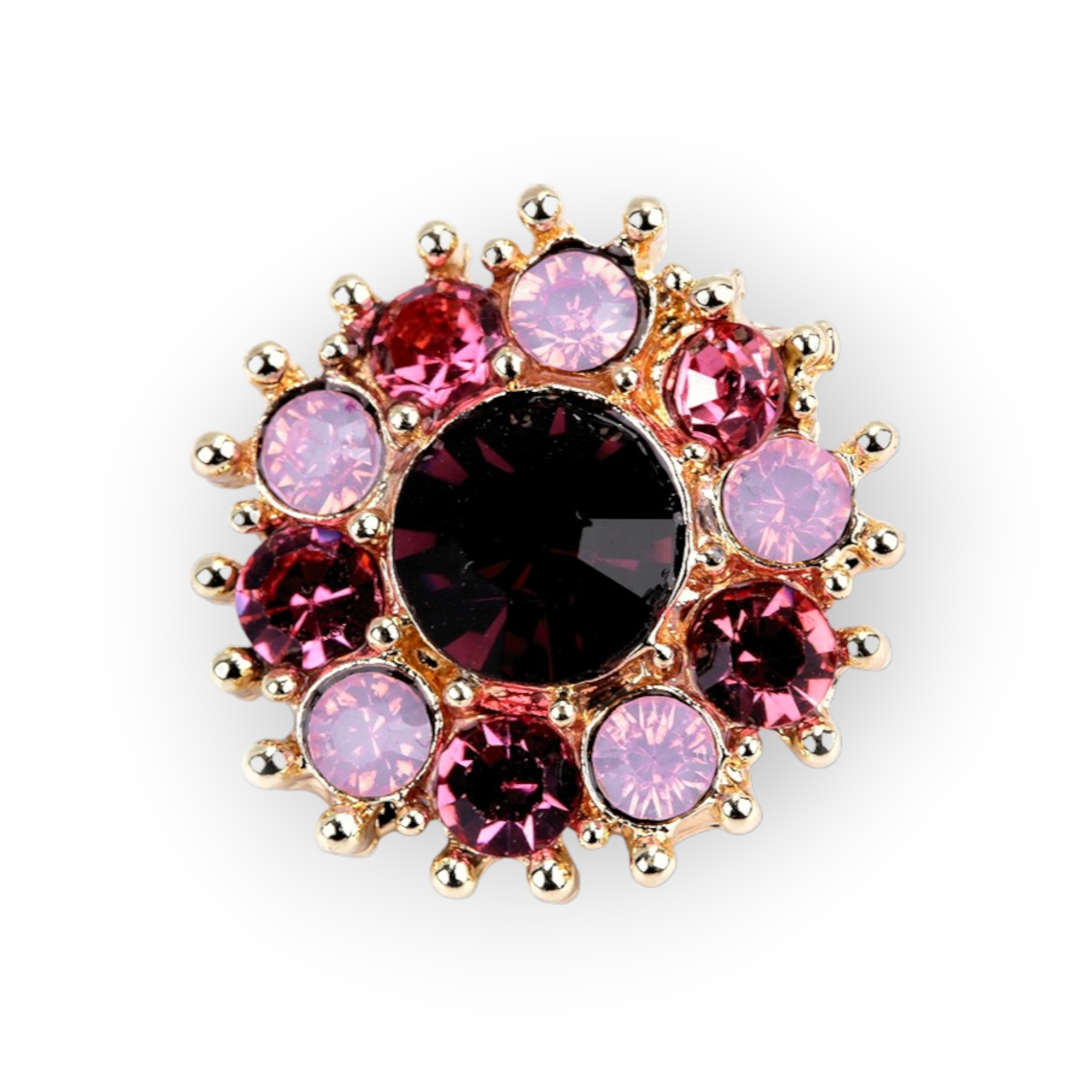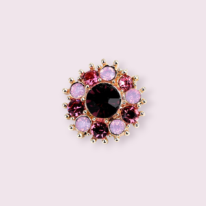 Brosa mica rotunda este impodobita cu pietre taiate colorate. Este foarte eleganta, seamana cu o floare. O puteti folosi pentru imbracaminte casual si pentru evenimente sociale. Decoreaza perfect hainele, gentile de mana, palariile si este potrivita pentru decorarea unei esarfe.
