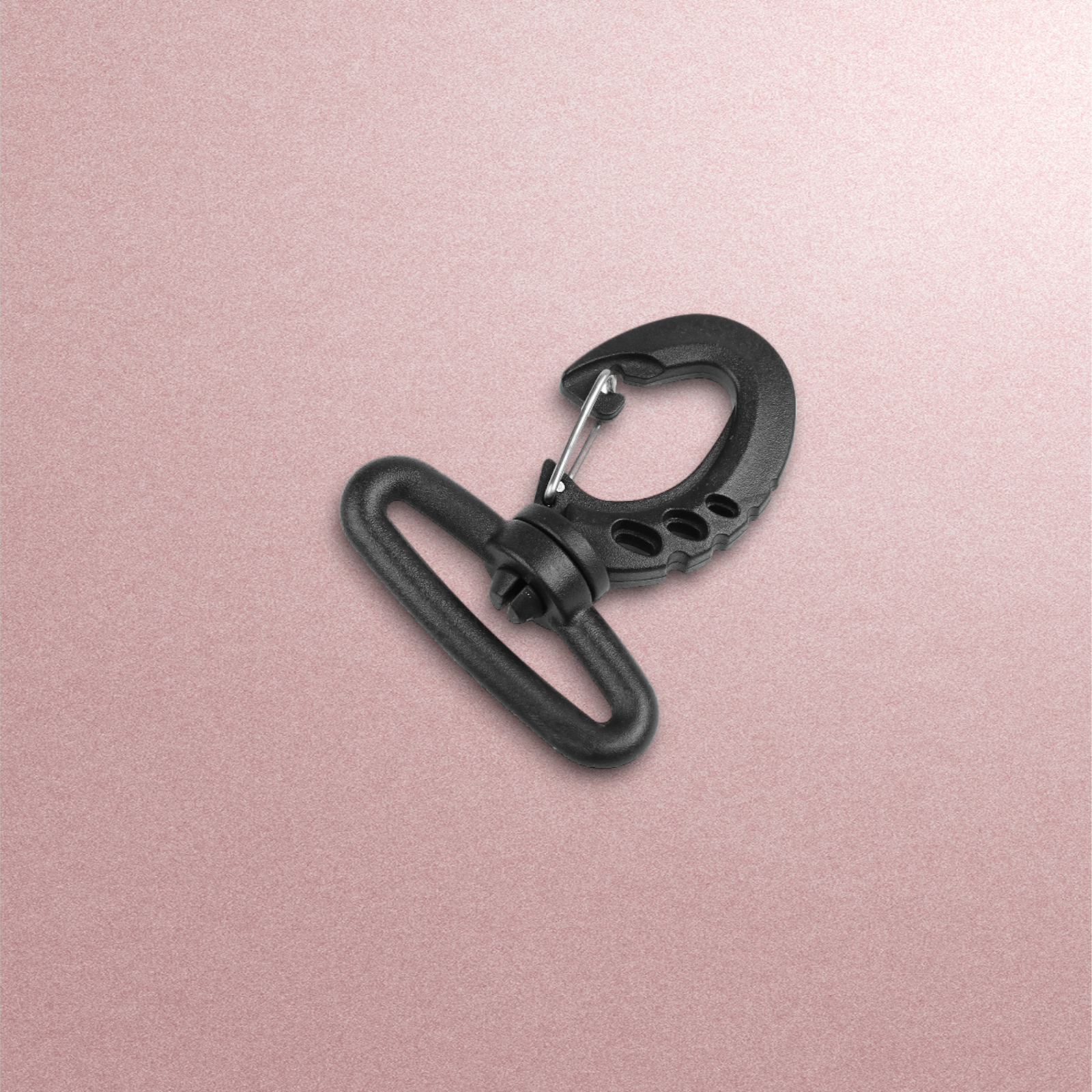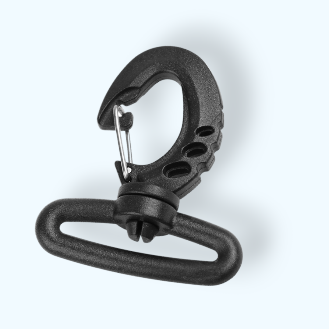 Carabina din plastic este potrivita pentru curele pentru genti de sport, rucsacuri sau genti de mana mai mari. Are o greutate redusa si este rotativa.