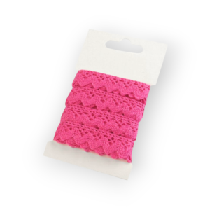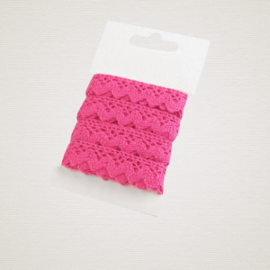 Dantela din bumbac are un aer romantic. Pe o parte este finisat cu bucle moi.
