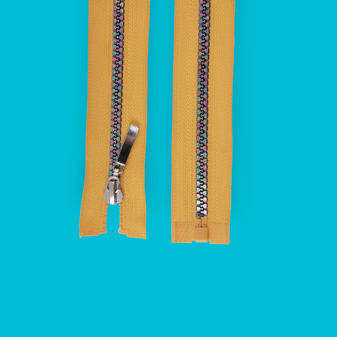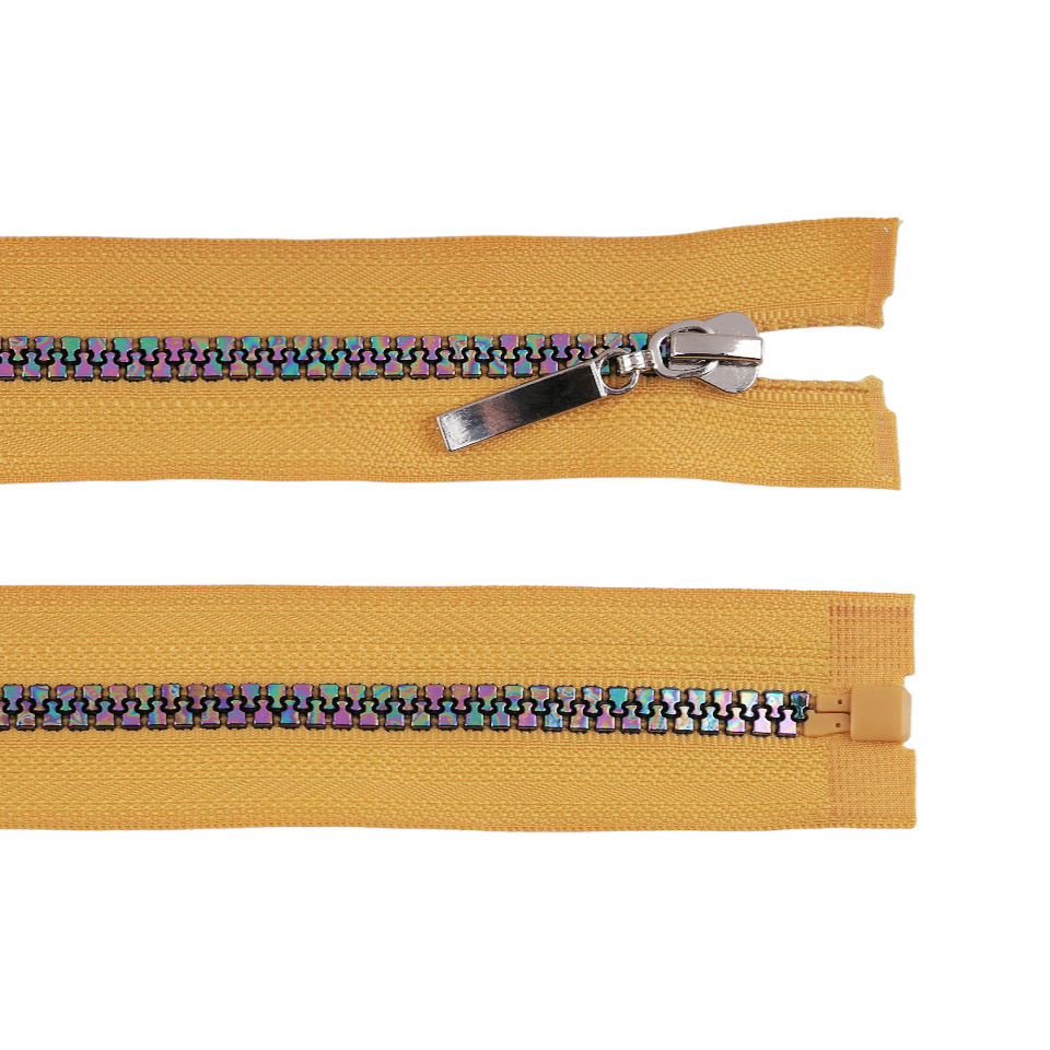 Fermoar plastic detasabil, efect curcubeu, lungime 70 cm, Galben mustar