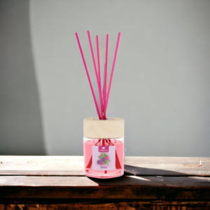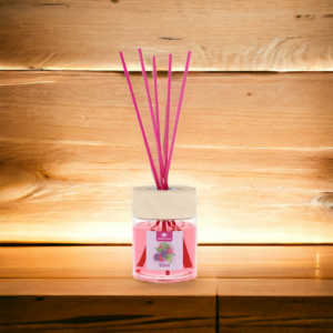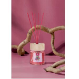 Contine: recipient din sticla cu 35 ml esenta si capac de lemn, 5 bete de ratan colorate.