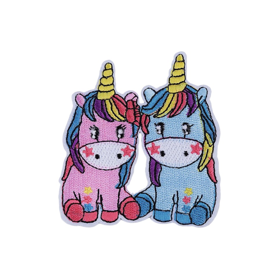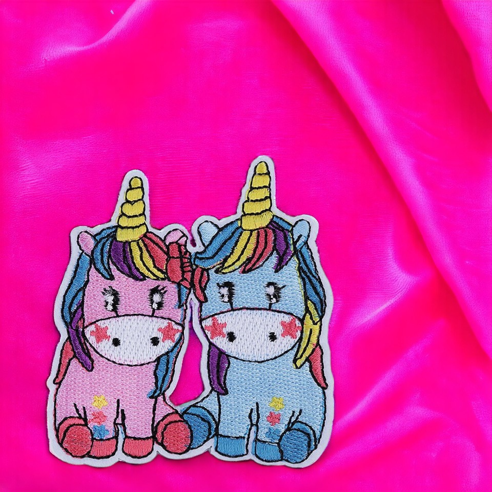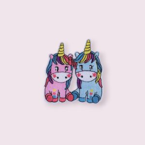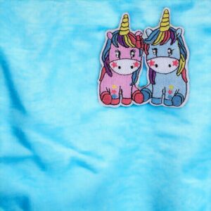 Petic termoadeziva brodat Crisalida, 66 x 75 mm, Unicorn albastru roz