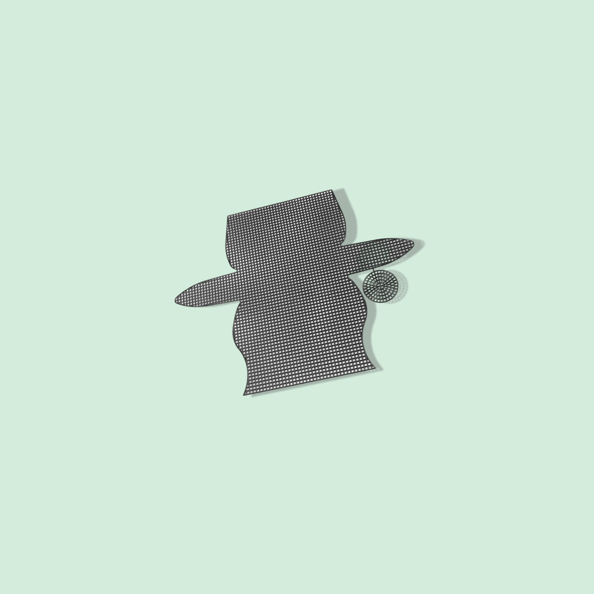 Brodeaza panza pe toata suprafata cu fire si coase pe partile laterale. Taiati roata (Ø4 cm) pe lateral, aceasta va servi ca element de fixare (puteti plasa in ea un dispozitiv de fixare magnetic clasic).Dimensiunile unui patrat sunt 2,5 x 2,5 mm.