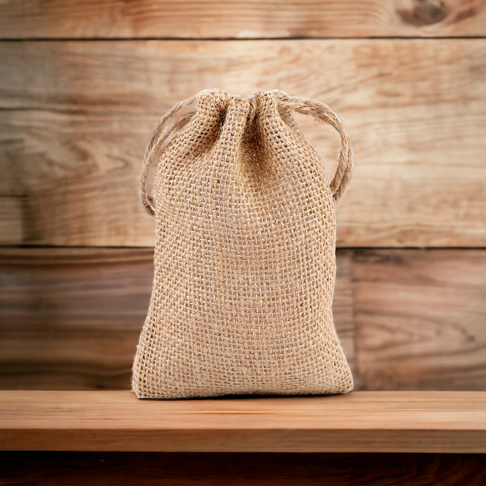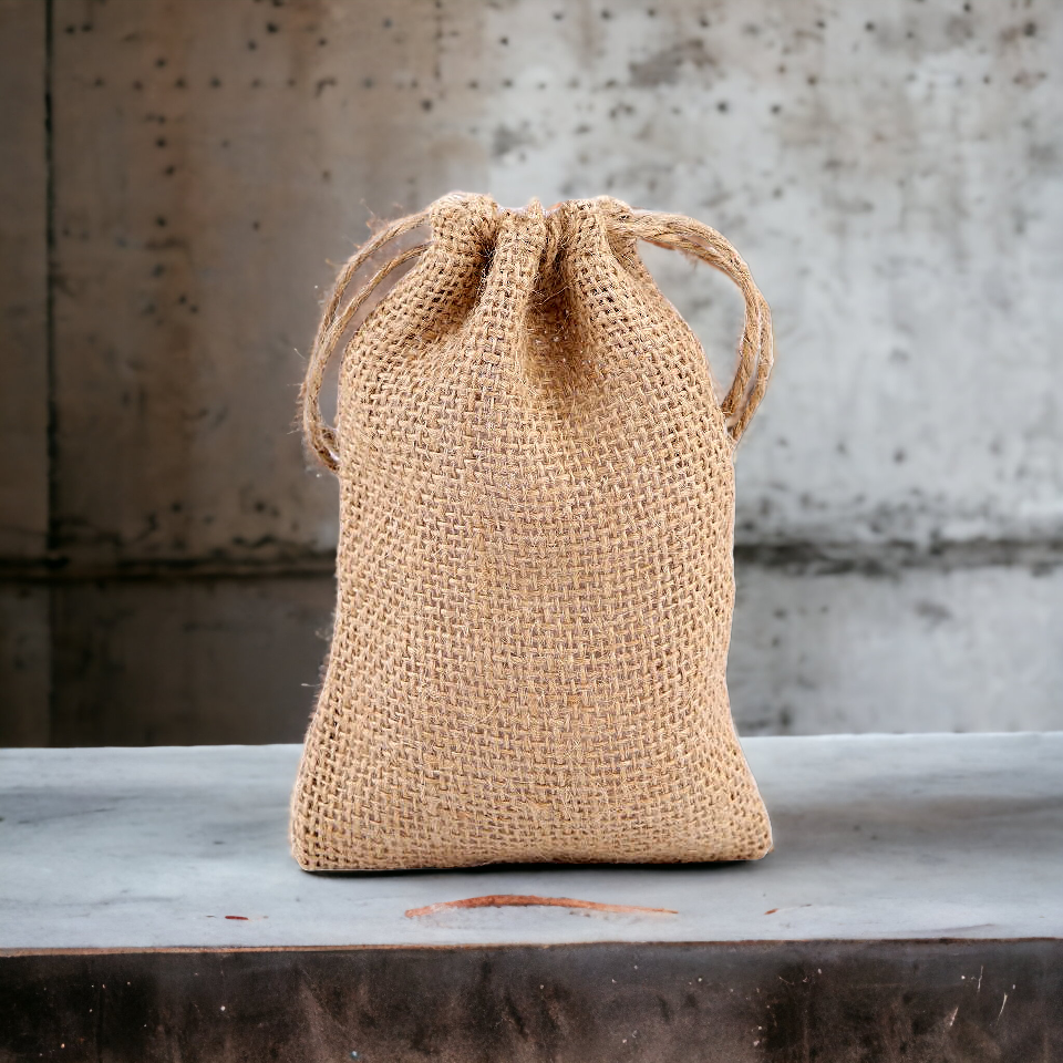 Saculetul din iuta se inchide usor cu doua snururi.Utilizare: Puteți folosi punga pentru a stoca flori uscate parfumate. Este un ambalaj interesant pentru un mic cadou pentru fanii unui stil rustic.