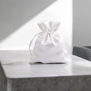 Saculet din satin pentru cadouri Crisalida, 9,5 x 13 cm, Alb