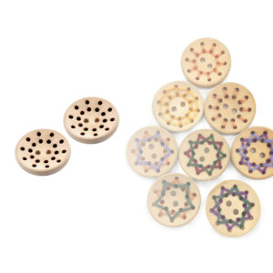 Nasturii convexi din lemn sunt interesanti cu perforatiile lor, pe care le puteti folosi pentru broderie simpla si eficienta sau pentru alte finisaje creative.