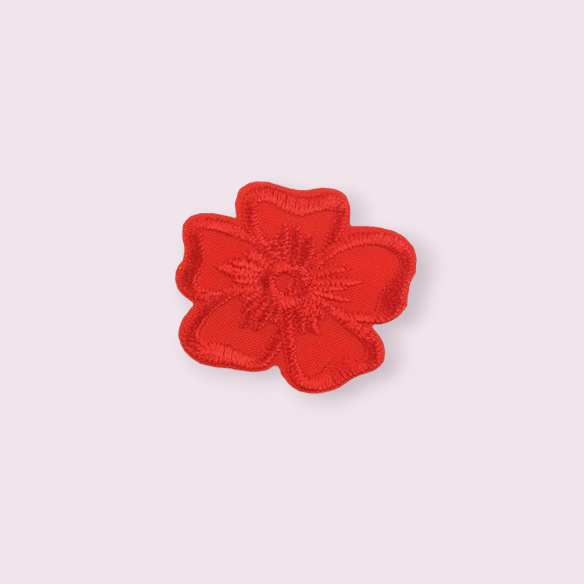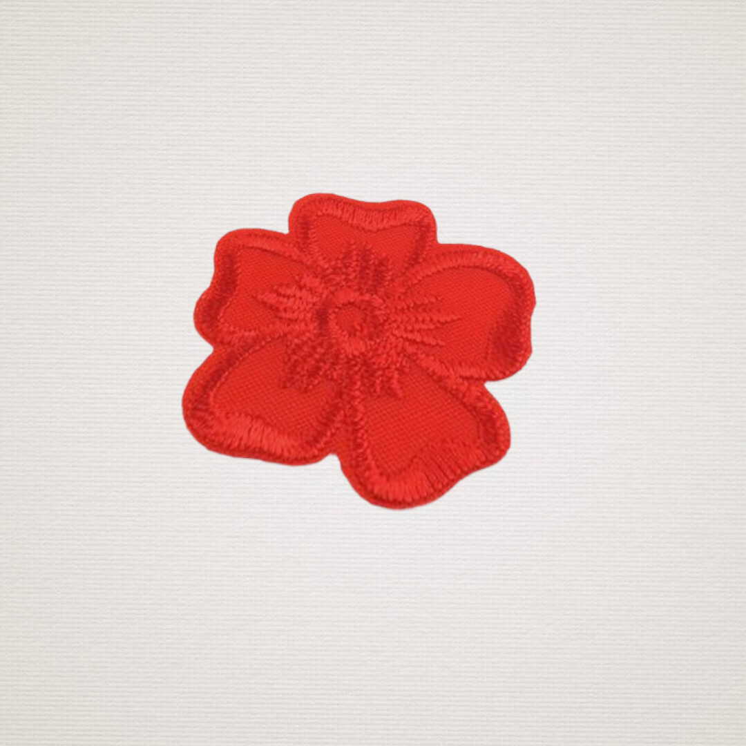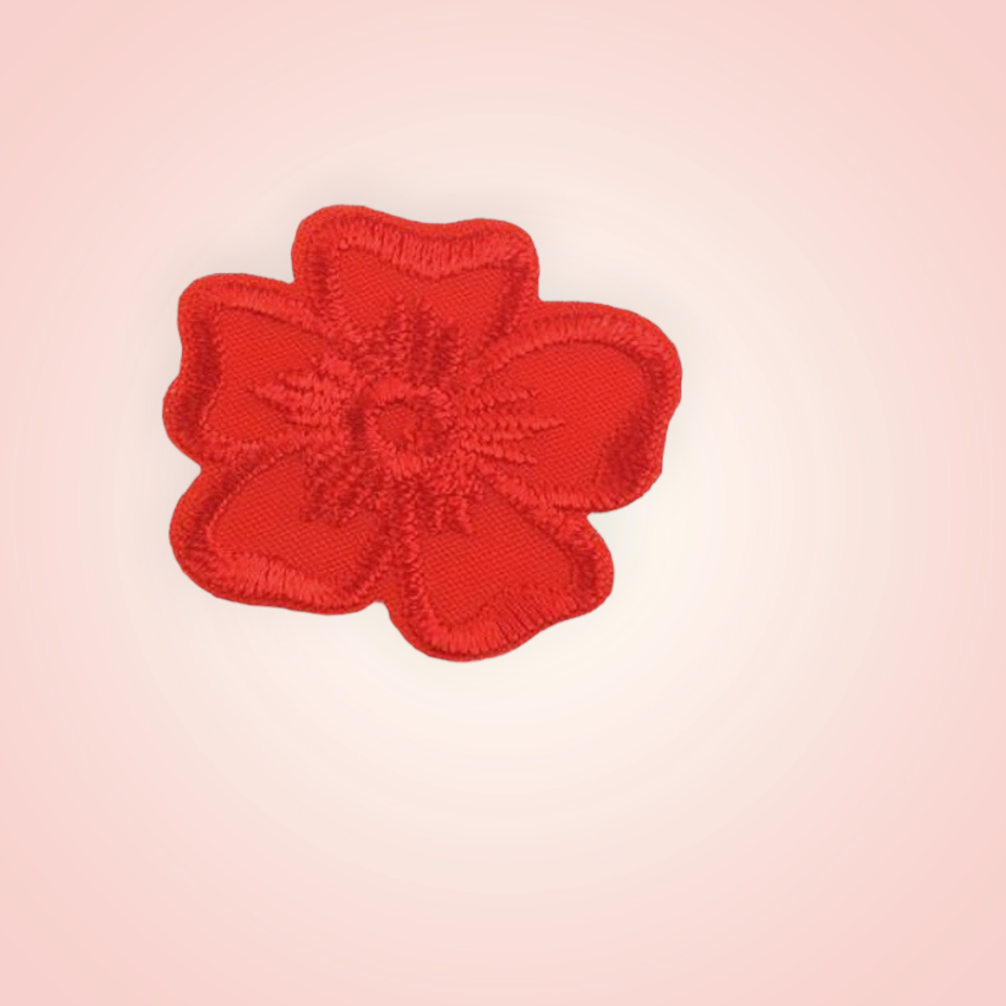 Set 5 aplicatii termoadezive brodate Crisalida, 35 mm, floare Rosie