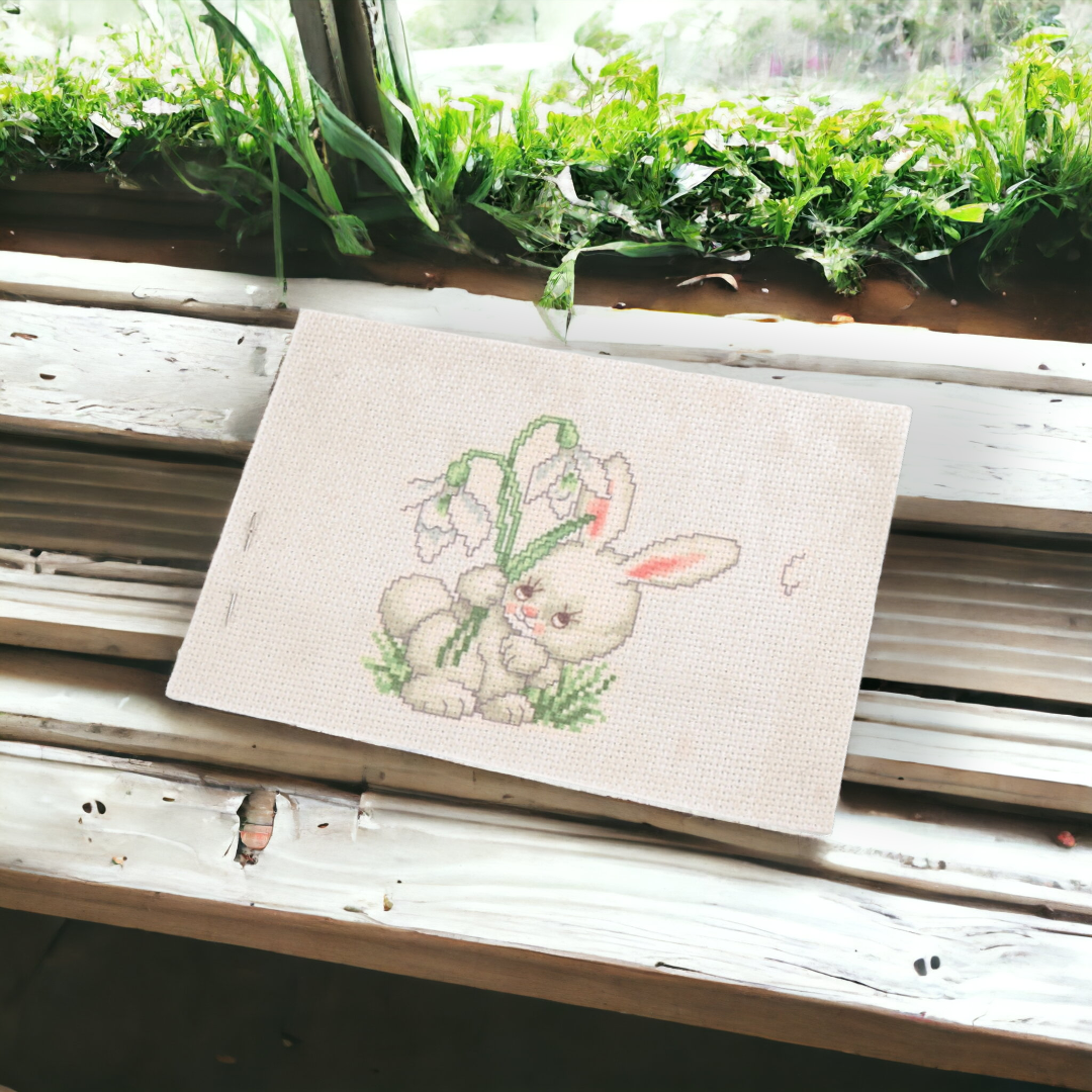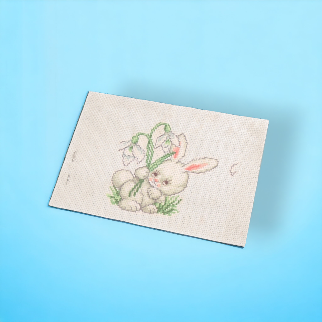 Set de brodat pentru copii, model imprimat 14 x 20 cm, Iepuras